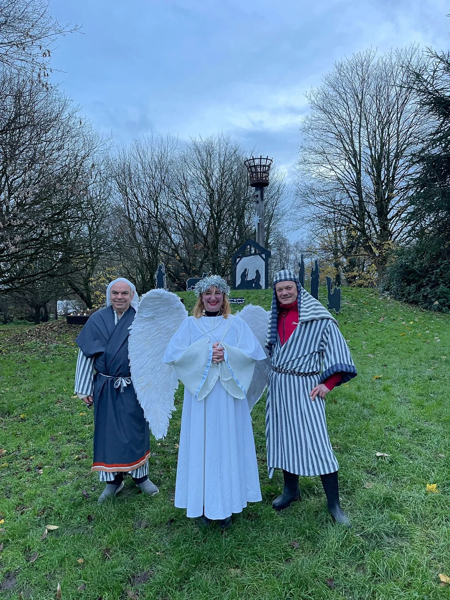 Early in the evening, a gathering of people assembled at Manor Court School and walked in a procession, led by an angel (played by Tracey-Ann Bruce), up to the Beacon for group carols led by Reverend Nick Jerrett.